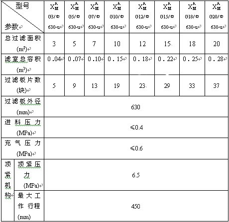 板框壓濾脫水機技術參數